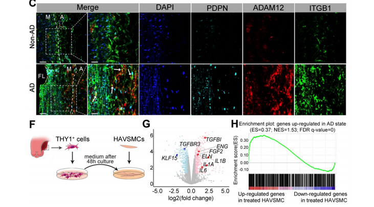 研究發現成纖維細胞與平滑肌細胞之間相互作用的失調是主動脈夾層的發病機制之一