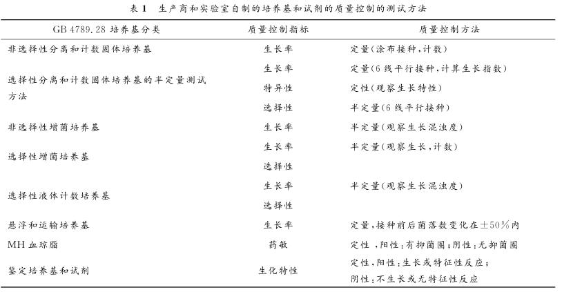 表1生產(chǎn)商和實驗室自制的培養(yǎng)基和試劑的質(zhì)量控制的測試方法